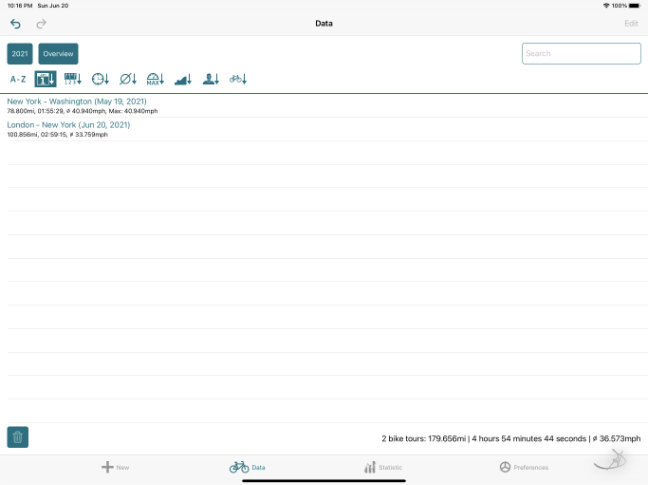 You see the iPad version of ADbike 2. ADbike 2 is a statistic app for your bike tours. You can enter the name of the tour, the distance, the time, the date, the maximum speed and the driven height metres. You can also set the bike you used. ADbike 2 will show you some statistics for your data. ADbike 2 is not only available for your iPad as an iOS version. It is also available for macOS.
