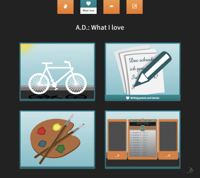 Here you can see a portfolio webpage with a symbol design. There are only three pages: What I do, what I love and who I am. And of course there is also a contact form page.